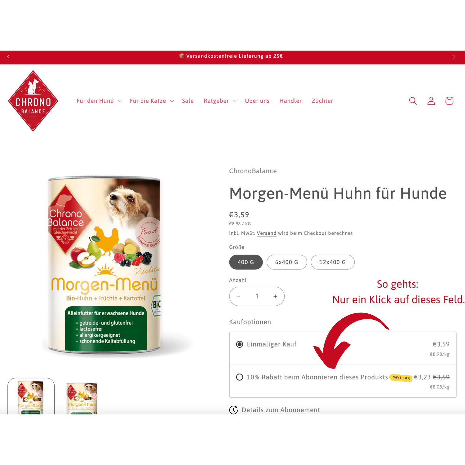 Entdecken Sie das ChronoBalance Nassfutter Flex-Abo: 10% Rabatt auf jede Bestellung!