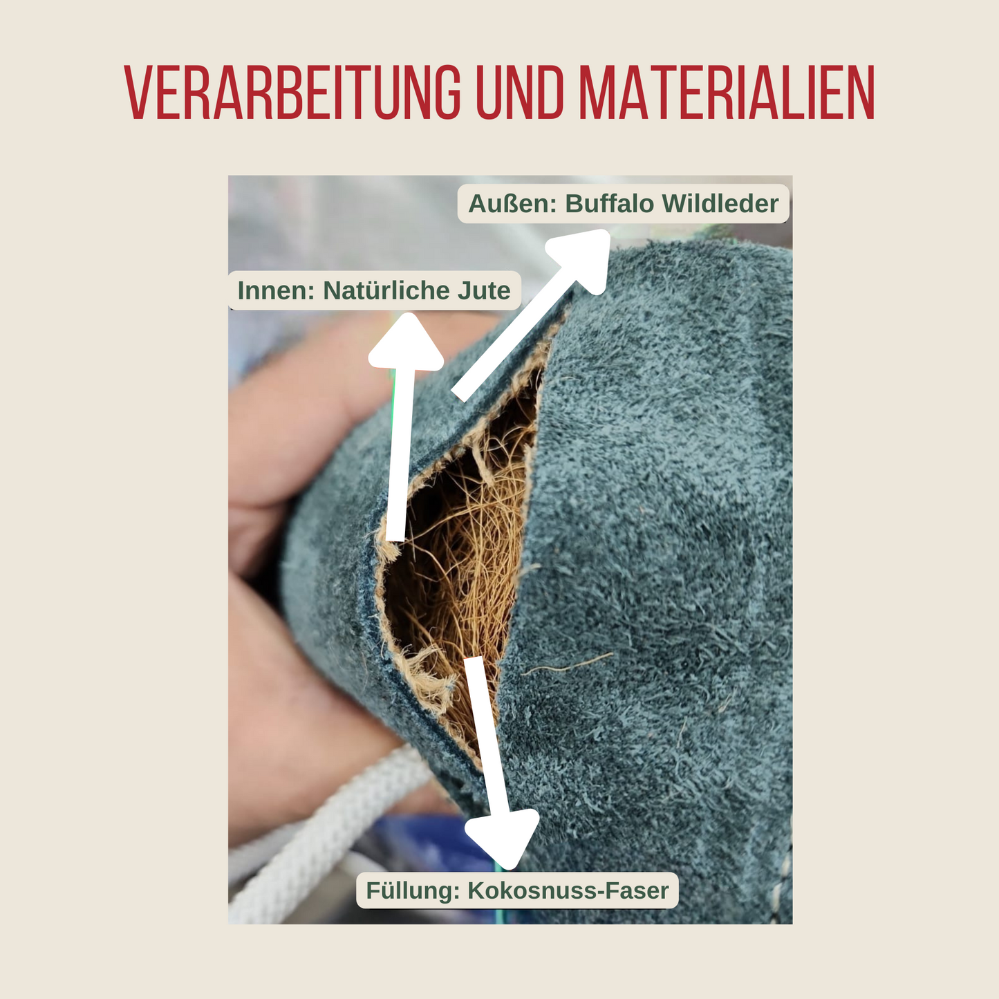 - Doppelte Schicht aus Wildleder und Jutestoff für Robustheit